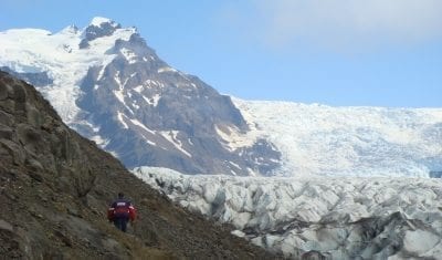 Drive down to the south coast and make sure to stop at Seljalandsfoss waterfall and walk behind the waterfall. In Skógar, right by the waterfall Skógafoss, we recommend a visit to the local folk museum before driving further to your next stop at the bird cliff Dyhólarey. Nearby Dyrhólaey, the magnificent beach of Reynisfjara is a must! Through the black desert sands of Mýrdalssandur and the lava field “Eldhraun” or “Fire Lava” you’ll reach the accommodation in the area around Kirkjubæjarklaustur. 1 night (ca. 160 miles / 250 km)