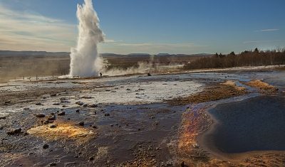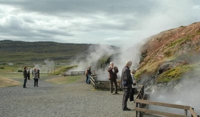 Drive through the geothermal area of Nesjavellir, passing a geothermal power station, and around Lake Þingvallavatn into Þingvellir National Park, which was recently added to UNESCO’s World Heritage List. Drive across the mountain plateau of Lyngdalsheiði to the small village Laugarvatn. From there continue to the unique hot spring area at Geysir and the breath-taking waterfall Gullfoss. Here we suggest a hike along the Gullfoss gorge which will take about two hours. On the way to the accommodation, an optional stop can be at the historical cathedral site at Skálholt or at some of the Greenhouse farms for fresh vegetables. 1 night in or near the geothermal area of Flúðir (ca. 170 km)