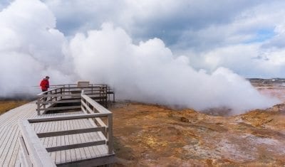 Drive via Selfoss along the south coast to the towns of Eyrabakki and Stokkseyri where you will see many refurbished, historic houses. Passing through the port of Þórlákshöfn, you come to the geologically interesting lake Kleifarvatn with the geothermal field Seltún, where you can follow paths between the mud pots. In the Blue Lagoon, you can enjoy pure relaxation in the midst of a lava field. Afterwards, you can visit the fishing village of Grindavík.